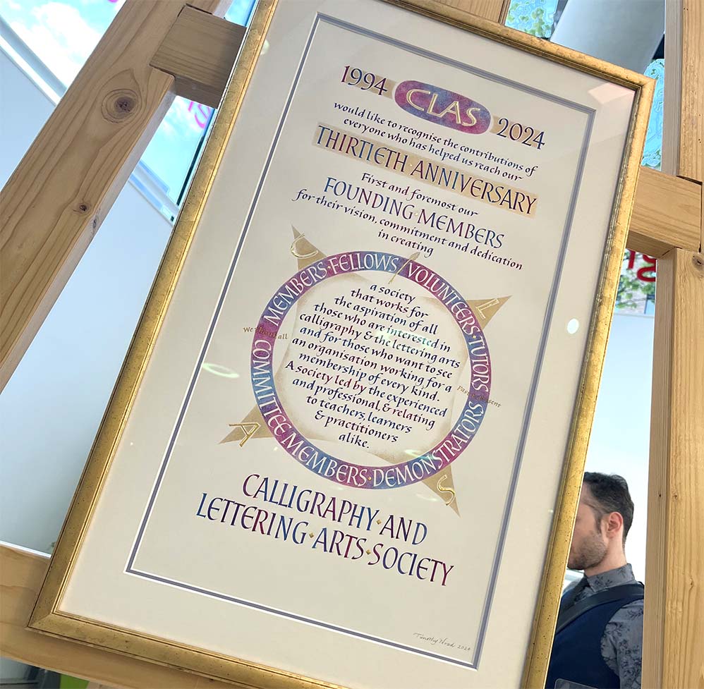 The Calligraphy & Lettering Arts Society (CLAS) is the UK’s leading organisation for calligraphy and the lettering arts. Since 1994, we have connected learners, tutors, and enthusiasts across the country and beyond, creating opportunities to study, share, and enjoy the beauty of the written word.